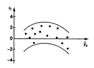 от теоретических значений результативного признака (рис. 2.1). Если на графике получена горизонтальная полоса, то остатки