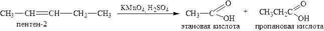 2.2. Окисление в «жёстких» условиях (полное, исчерпывающее окисление) происходит в присутствии сильной кислоты с разрывом углеродной цепи в районе двойной связи и образованием карбоновых кислот из углеводородных остатков: