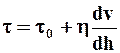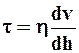 Если рассмотреть две параллельные площадки в движущейся жидкости, которые отстоят друг от друга на расстоянии Dh и движутся с скоростями v и v + Dv, то жидкость, подчиняющаяся закону вязкости Ньютона, имеет следующую формулу для определения касательного напряжения: