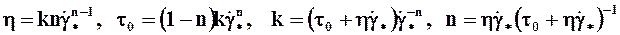 где t0 - предельное (или динамическое) напряжение сдвига; h - пластическая (структурная) вязкость; k - показатель консистенции; n - показатель неньютоновского поведения: при n < 1 жидкость псевдопластичная, при n > 1 - дилатантная.
