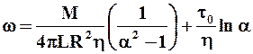 При течении жидкости между двумя вертикальными соосными цилиндрами длиной L, из которых наружный вращается с угловой скоростью w, реологические параметры для бингамовской жидкости могут быть определены из соотношения: