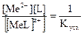 Прочность комплексного соединения характеризуется константой устойчивости (Куст.) или ее обратной величиной – константой нестойкости (β):