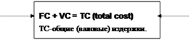 Постоянные (FС -fixed cost) -их изменение не зависит от объема производства (амортизация зданий, рентные платежи, административно-управленческие расходы) | Переменные (VС-variable cost) их величина изменяется в зависимости от объема производимой продукции (затраты на сырье, материалы, зарплата и др.) |