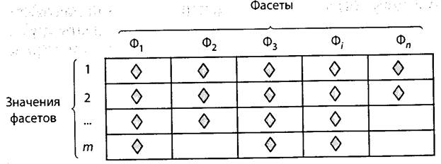 Классификацию объектов по фасетной системе удобно выполнять в виде таблицы (рис. 6.6).