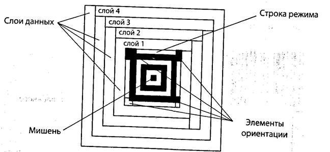 Мишень служит только для определения геометрического центра, а элементы ориентации позволяют правильно ориентировать штрих-код в процессе декодирования, независимо от ориентации оригинала при сканировании. Строка режима имеют фиксированную длину, которая кодирует два параметра — количество слоев данных и объем кодированных данных. Слои данных включают последовательность кодовых слов, содержащие пользовательские данные, к которым добавлены коды выявления и коррекции ошибок.