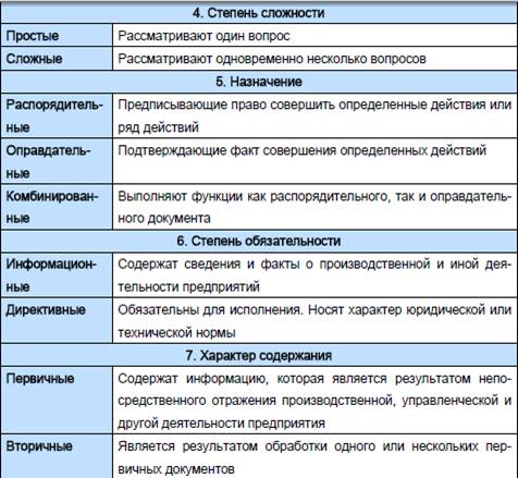 Большое количество разнообразных документов требует их подробной классификация, под которой понимается распределение документов по группам (видам) на основе признаков содержания, формы составления и др. с целью организации и повышения эффективности работы с ними. Выделяют большое количество видов документов (порой их количество на предприятии достигает до500), основные из которых представлены в табл. 6.3.