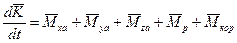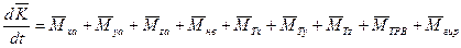 Уравнения вращательного движения вертолета в проекциях на оси связанной СК имеют вид (5.12) – (5.14), в которых Mx, My, Mz определяются как сумма проекций моментов, входящих в правую часть (5.7), соответственно на оси OX, OY и OZ.