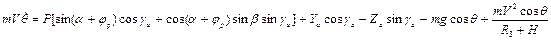 Уравнения движения центра масс (5.6) вертолета часто используют в проекциях на связанные оси координат OXYZ в следующей форме ([2], стр.40):