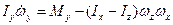 Рассмотрим уравнения моментов в скалярной форме при проектировании (5.5) на оси связанной СК, ориентированных вдоль главных осей инерции самолета (ракеты), для которых центробежные моменты инерции нулевые (Ixz=Iyz=0), а значения Ixy - малы. Из курса теоретической механики известно, что уравнения вращательного движения ЛА в проекциях (5.5) на OXYZ запишутся в виде [1], [2]