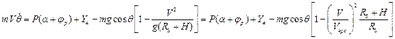 Эти уравнения целесообразно использовать при скоростях ЛА не менее V=1000 м/с.