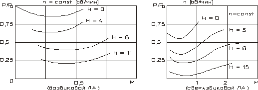 Повторяя расчеты найдем различные значения потребных тяг для горизонтального полета, которые наносятся на график совместно с располагаемыми тягами (см. рис. 30).