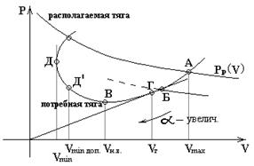 Под располагаемой тягой P р понимается максимальная тяга всех двигателей, уста- новленных на ЛА, определённая для данного режима полёта (V Потребная тяга P п для установившегося горизонтального полёта подбирается лётчиком из условия (8.1) и не должна превышать располагаемой