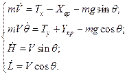 Рассмотрим схему сил, действующих на вертолет в вертикальной плоскости. (Проекции представлены на траекторные оси координат,