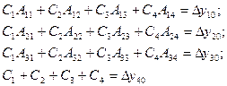 =1,2,3,4) напишем систему уравнений (11.9). Таких систем будет четыре, из которых определим 16 коэффициентов