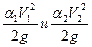 – скоростной напор (удельная кинетическая энергия) в сечениях, м;