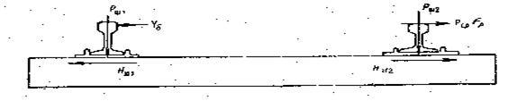Рис. 1 Схема сил, передаваемых от колес подвижного состава на рельс и от рельса на шпалу