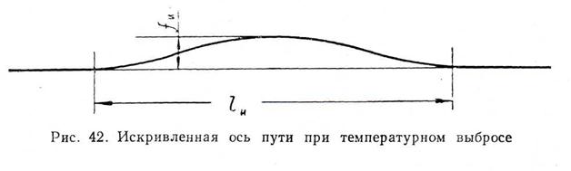 В основе этих способов расчета положен учет накапливающейся в пути потенциальной энергии по мере увеличения сжимающей температурной силы и определение такой величины, при которой рельсо-шпальная решетка становится неустойчивой, происходит выброс ее с соответствующими деформациями элементов пути. В результате выброса искривленная рельсо-шпальная решетка занимает положение, соответствующее равновесию между силами сопротивления ее дальнейшему искривлению и уменьшившейся в результате деформаций продольной температурной силой сжатия рельсовых плетей.