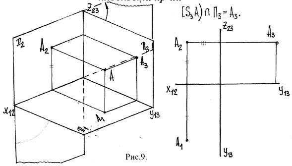 Любая точка, расположенная в пространстве, наз-ся т-кой оригинала. На эпюре она отсутствует, но, если точка Î какой-либо плоскости проекций, то в этом случае, точка-оригинал совпадает с одной из своих проекций.