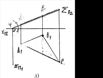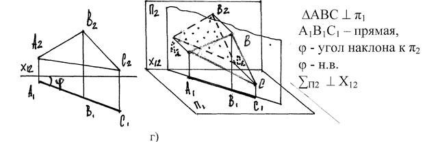 Если пл-ть задана треугольником, то горизон-ая пр-ия изображается в виде отрезка.