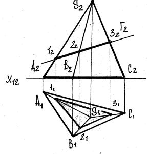 Задача 2. Построить ЛП пирамиды Г с фронтально- проецирующей пл-тью Σ.