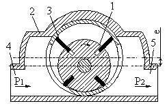 1 – ротор; 2 – статор; 3 – пластина; 4 – камера всасывания; 5– камера нагнетания