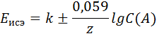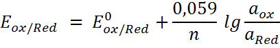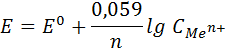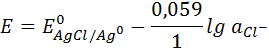 E = E0 + 0,059 lg C (Ag+)