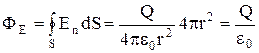 В соответствии с формулой (1.5) поток вектора напряженности сквозь сферическую поверхность радиуса r, охватывающую точечный заряд Q, находящийся в ее центре (рис 6),
