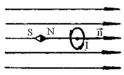 За направление магнитного поля в данной точке принимается направление, вдоль которого располагается положительная нормаль к рамке (рис. 32). Следовательно, на магнитную стрелку действует пара сил, поворачивающая ее так, чтобы ось стрелки, соединяющая южный полюс с северным, совпадала с направлением поля.