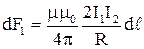 Рассуждая аналогично, можно показать, что сила dF2, с которой магнитное поле тока І2 действует на элемент d