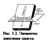 Линия простирания – линия пересечения залежи горизонтальной плоскостью (линия АБ, рис. 1.2).