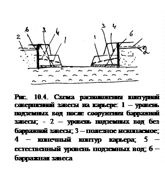 Барраж – способ защиты карьеров от подземных вод путем полного или частичного ограждения горных выработок с помощью водонепроницаемых устройств.