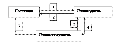 где 1 – продажа оборудования; 2 – оплата оборудования; 3 – поставка оборудования; 4 – соглашение о лизинге; 5 – платежи по лизину.