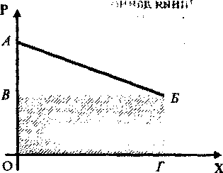 Потребительский излишек есть разность между ценностью и стоимостью данного количества блага. Его можно рассматривать как разность между максимальными ценами, которую потребитель заплатил бы за каждое данное количество блага, и рыночной ценой этого количества. На графике это площадь АБВ.