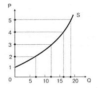 На рынке складывается определенное соотношение между рыночными ценами и количеством товаров, которое производители желают предложить покупателям. Эту зависимость можно также отразить графически, применив систему координат. Пусть ось абсцисс (Q) служит для обозначения товара, доставленного на рынок, а ось ординат обозначает движение цены (Р). Для ситуации, когда при цене 5 долл. за единицу товара предложение товара составит 18 изделий, при цене 4 долл. — 16 изделий, при цене 3 долл. — 12 изделий, при цене 2 долл. — 7 изделий и при I долл. — ни одного изделия, получим соответствующий график предложения.S (supply)