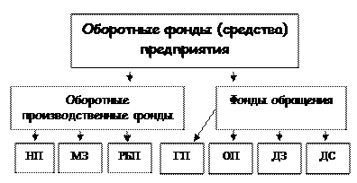 Оборотные фонды – стоимостное выражение ресурсов предприятия, которые участвуют в процессе производства один раз, полностью переносят свою стоимость на себестоимость продукции, изменяют свою натурально-вещественную форму.