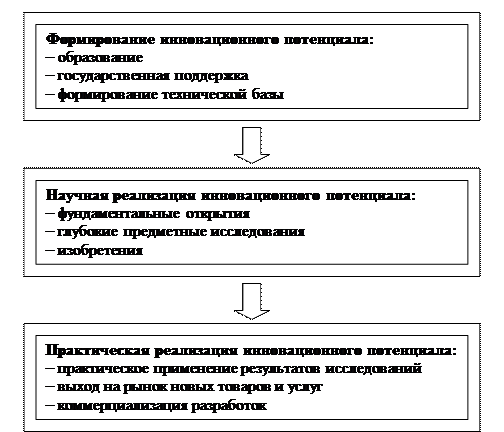 Под инновационным потенциалом мы понимаем совокупность различных ресурсов, необходимых для осуществления инновационной деятельности, а под его реализацией – применение этих ресурсов для осуществления инноваций.
