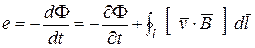 и (или) возникающей в неподвижной рамке, сцепляющейся с изменяющимся во времени потоком Ф