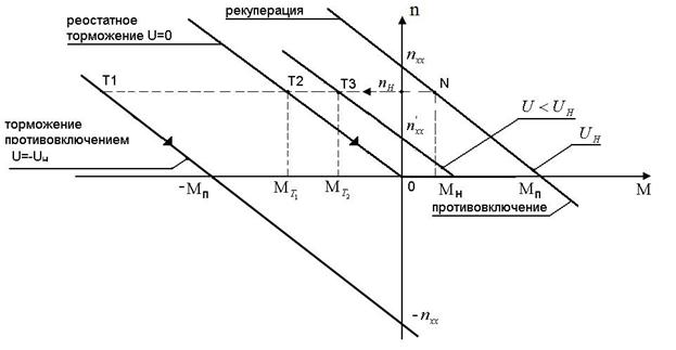 На рисунке 2.13 изображены основные тормозные режимы ДПТ.