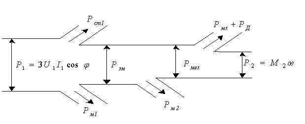 Рассмотрим преобразование электрической мощности, подводимой к статору двигателя с помощью энергетической диаграммы, что позволит получить выражение для вращающего момента АД.