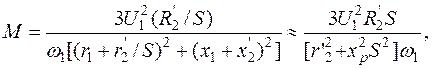 . При S=0 ротор “догоняет” ВМП статора и М=0. Ротор начинает затормаживаться и его скольжение возрастает до номинального.Если из выражения (3.17) найти производную