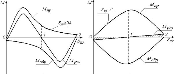 – электромагнитные моменты, создаваемые соответственно прямым, обратным и результирующим ВМП. В трехфазном АД с прямым ВМП, как правило,