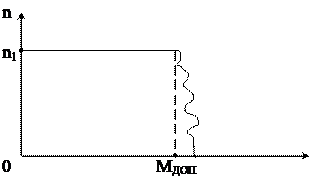 По мере возрастания момента сопротивления МС на валу СД до значения МДОП, угол q монотонно увеличивается до p/2. При дальнейшем увеличении МС и угла q электромагнитный момент начинает уменьшаться. Это приводит к катастрофическому увеличению угла q и выходу СД из синхронизма. СД останавливается и его обмотка статора может сгореть, во избежание чего противоаварийная защита должна отключить перегруженный СД от сети.