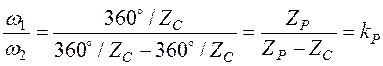 где рС – число пар полюсов обмотки статора, равное 1 или 2. Для рассмотренного случая (рис. 35) kР=4. Если ZP=100 и ZC=98, то kР=50.