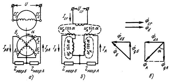 , необходимо свести к минимуму величину поперечной составляющей тока ФqA. Для этого обмотка СВ1 – СВ2 закорачивается на