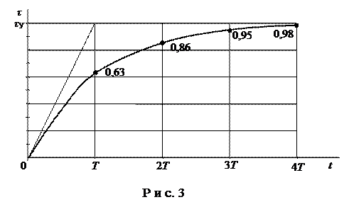 Таким образом, после включения температура проводника будет изменяться по экспоненциальному закону. Задаваясь рядом значений t и, вычисляя τ, получим график переходной характеристики (рис. 3).