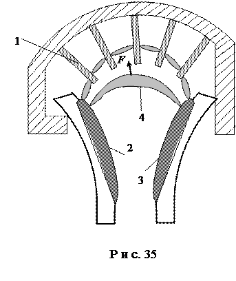 Дуга в решётку (рис. 35) может вводиться на пластины с помощью специально созданного магнитного поля или за счёт электродинамических сил возникающих в контуре 2, 3, 4 и за счёт применения ферромагнитных пластин решётки 1.