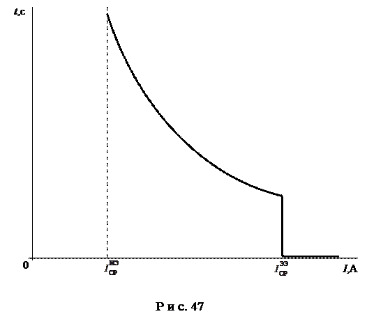 Времятоковая характеристика реле (рис. 47) должна соответствовать времятоковой характеристике защищаемого объекта. Напротив отверстий контактной колодки 4 имеется ряд цифр (4…10), которые соответствуют значениям кратностей токов «уставки» индукционного элемента