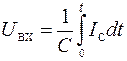 Таким образом, при ступенчатом воздействии напряжение на выходе линейно возрастает в функции времени t.