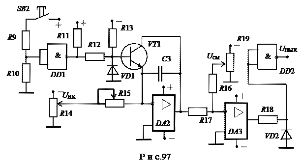 Схема на рис 97 изучается с целью получения практических навыков применения логических элементов и операционных усилителей.