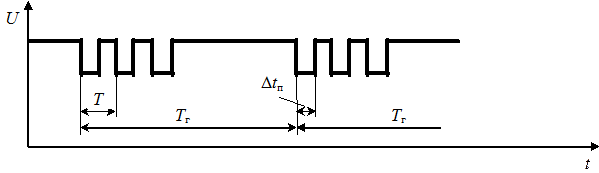 Периодическую последовательность ПН создают ЭСУ, работающие в автоматических сварочных линиях, и сварочные роботы. Эти последовательности ПН в зависимости от числа одновременно свариваемых точек могут быть трех видов: 1) отдельных ПН (рис. 3.12, а); 2) групп ПH (рис. 3.12, б); 3) комплексов групп ПН (рис. 3.12, в). Количество ПН в группах и групп в комплексах, а также периоды следования ПН (Т), группы (Т г) и комплексов (Т к), расстояния между ПН (